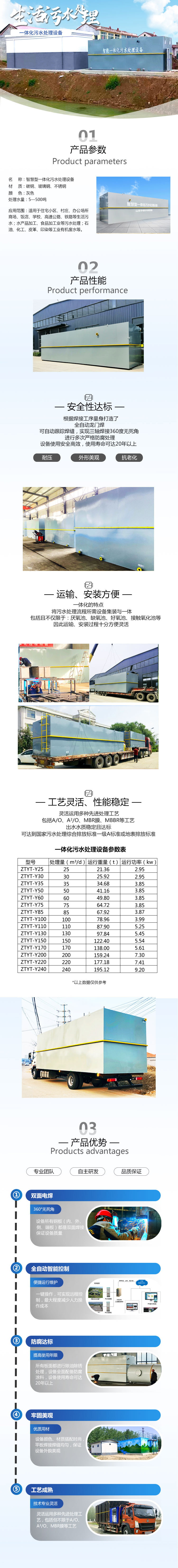 一體化污水處理設(shè)備所用的配件繁多,各具特色。首先,回轉(zhuǎn)式機(jī)械格柵,規(guī)格為渠寬1050mm,b=5mm,N=0.75Kw,采用不銹鋼材質(zhì),能有效攔截大顆粒污物,保護(hù)后續(xù)處理設(shè)備的正常運(yùn)行。鑄鐵矩形閘門,尺寸為渠道BxH=1100x800mm,為渠道的控制提供了堅(jiān)實(shí)的保障。柵渣小車則采用不銹鋼制造,輕便耐用,便于清理格柵攔截的污物。